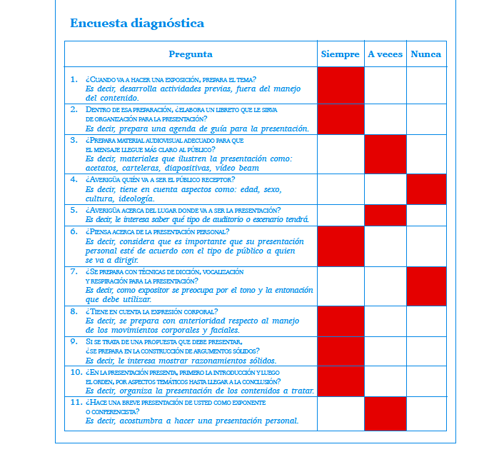 Encuesta diagnóstica y plan de mejoramiento de habilidades orales.